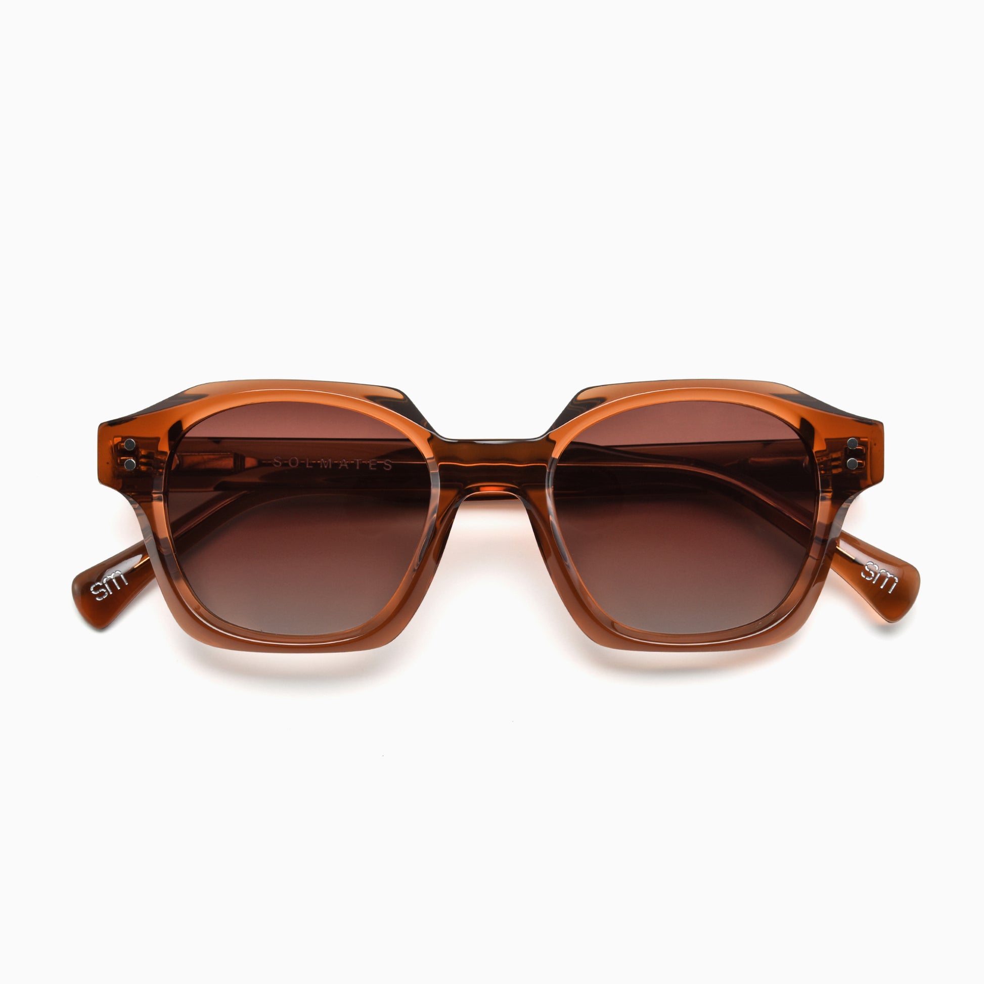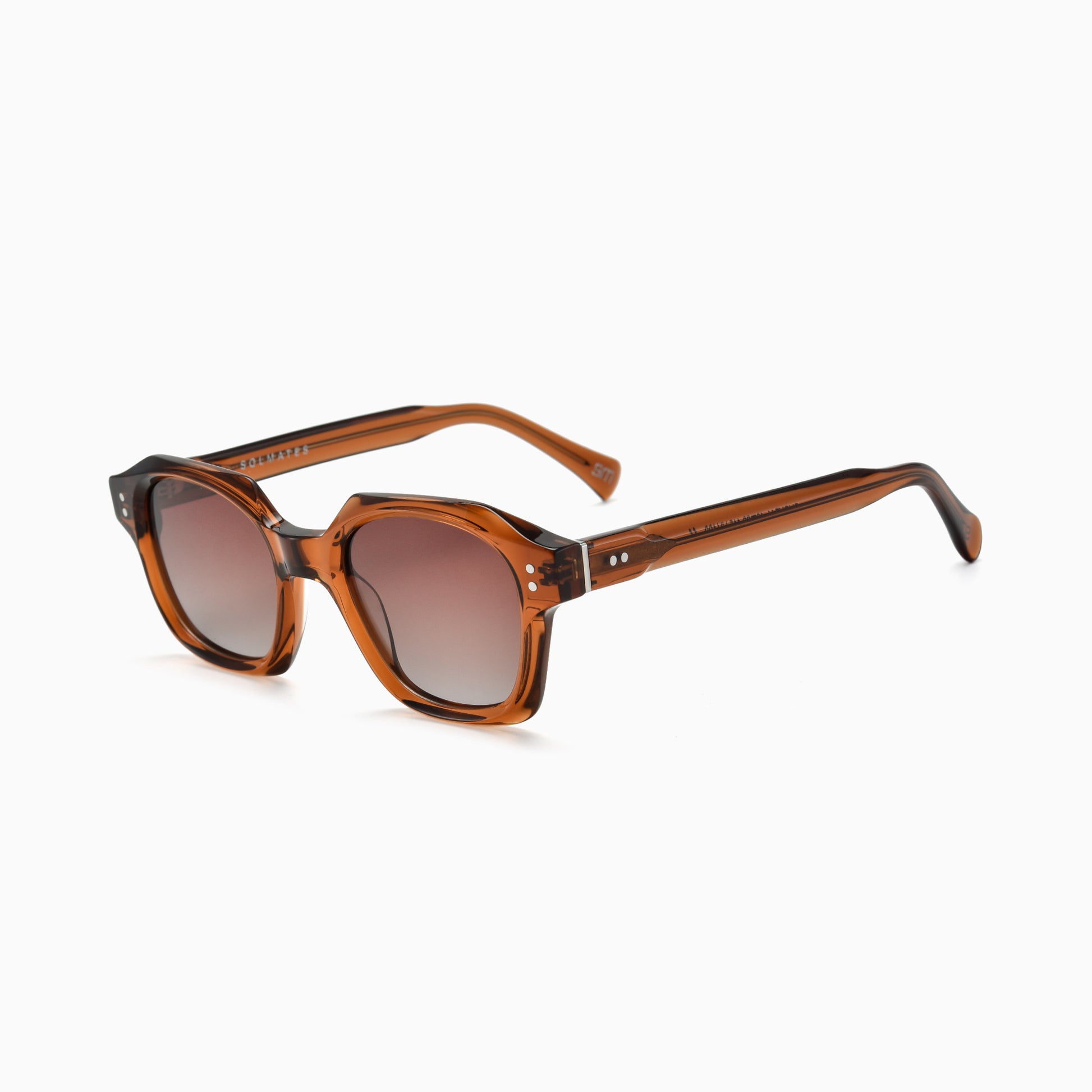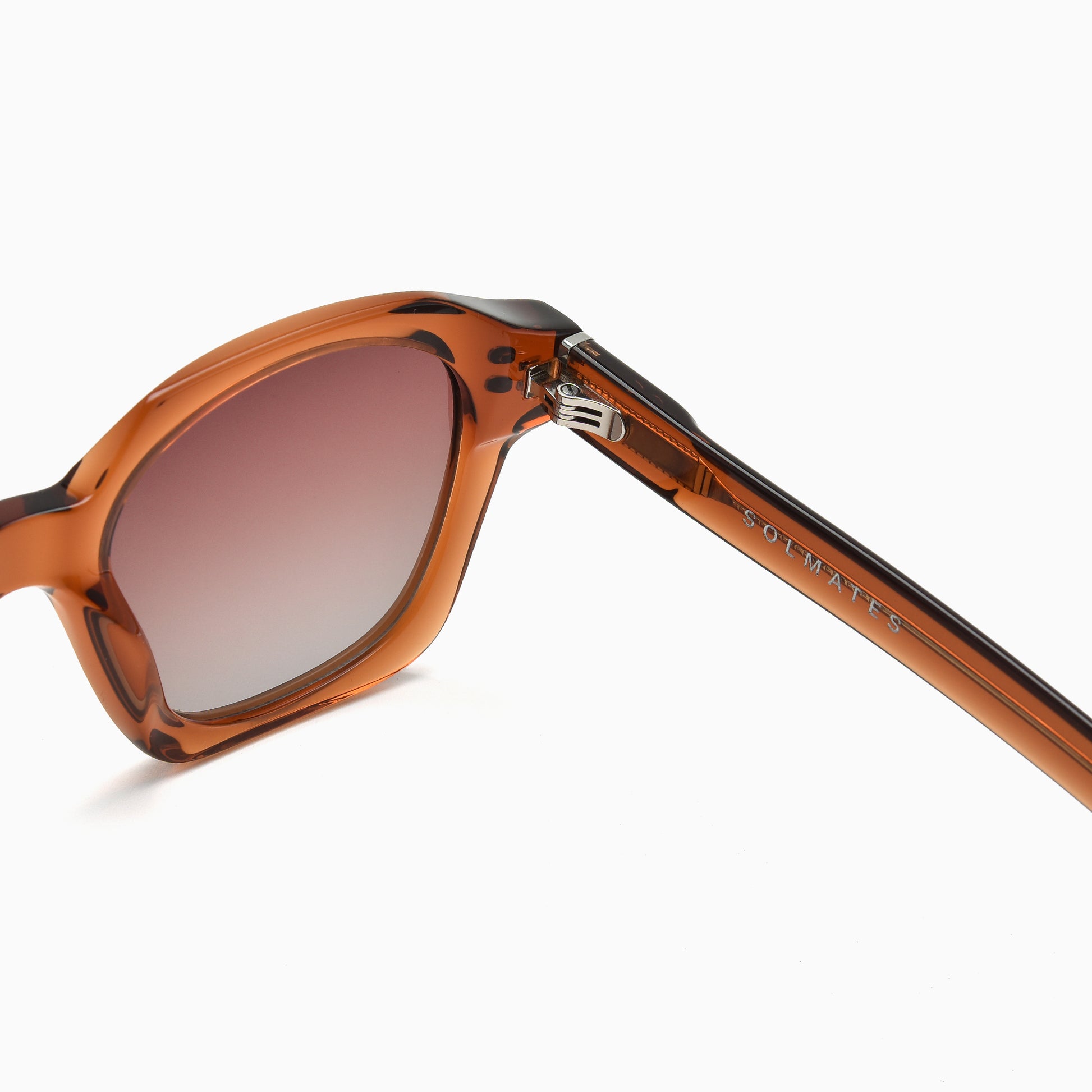 Armazón de acetato café con bisagras reforzadas 3+2 que aseguran comodidad y firmeza.